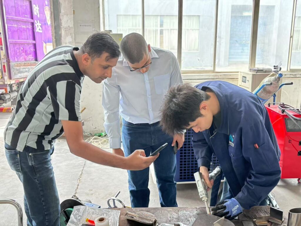 Under the guidance of our Sales Manager, the customers also toured our production facility, where they were introduced to our laser welding equipment and laser cleaning machines. Our team explained the working principles, application scenarios, and advantages of these machines in various industrial fields. The customers showed strong interest in these solutions and spoke highly of the technology and performance of our equipment.