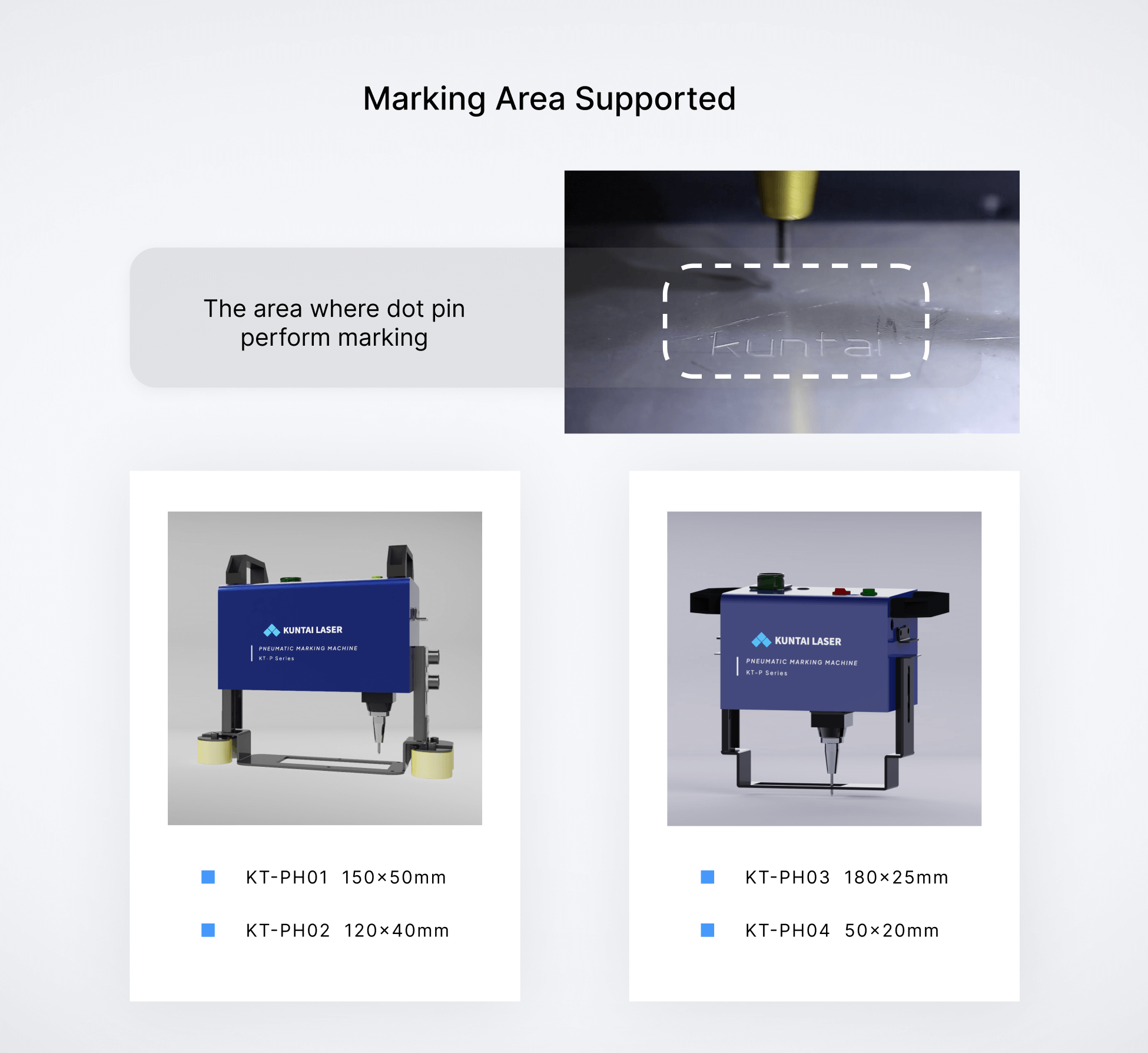 The KT-PH Portable Pneumatic Marking Machine by Kuntai features a selectable control system and an integrated design. Therefore, this model is lightweighted, compact, and easy to carry for most users. lt is suitable for outdoor and large workpiece marking, widely used in car modification shops, heavy-duty truck frame number marking, engine manufacturing repair process, and VlN code printing.